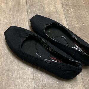 BOBS By Skechers Comfort Minimalist Black Ballet Slip On Canvas Shoes