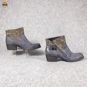 Step into effortless style with these BOC ankle booties in a versatile gray finish. Designed with a cozy tweed-knit cuff and accented by a functional side zipper with a tassel pull, these boots balance both comfort and modern flair. The block heel offers stable lift while the cushioned insole provides all-day wearability. Perfect for pairing with jeans, leggings, or dresses, these ankle booties bring a touch of casual sophistication to your wardrobe.