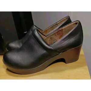 B.O.C. BLACK FAUX LEATHER COMFORT CLOG SLIP ON SHOE, SIZE 7.5M, JAYLIN STYLE