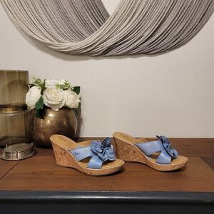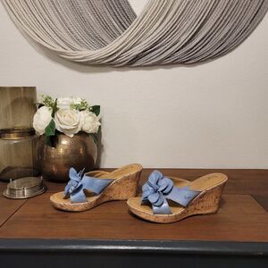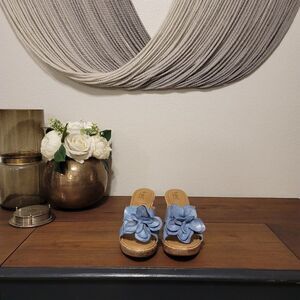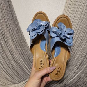 B.O.C. Blue Flower Wedge Sandals in corn flower blue Sz 8. Excellent, like new condition.