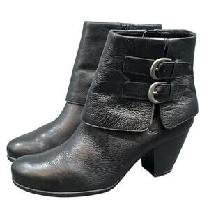 BOC Born Ankle Bootie 9 Black Side Zip Buckle Classic Capsule Western Goth Biker