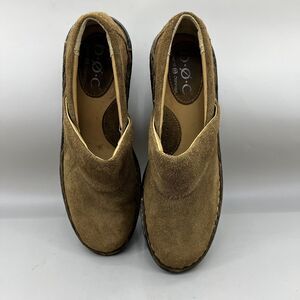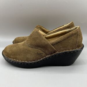 BOC Born Ankle Wedge Shoes Women Size 7 Brown Suede Slip-On Casual Clogs Heels