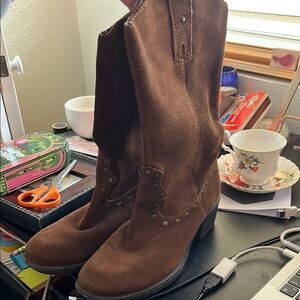 BOC Born Brown Suede Studded Western Style Boots Size 7/37