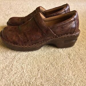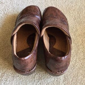BOC Born Brown Paisley Embossed Leather Slip On Clogs Nurse Shoes