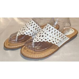 B.O.C. Born Caree Womens Thong Sandals White Vegan Leather Laser Cut Size 9M