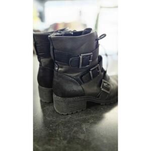 BOC (Born Concept) Black Faux Leather Combat Boots with Buckle Straps and Side Zipper