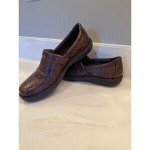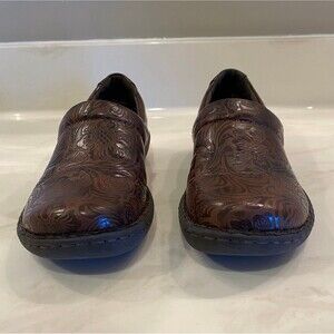 B.O.C. Born Concept Brown Floral Embosed Women Sz 7 Slip On Clogs Arch Suprt BOC