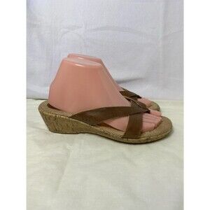 BOC Born Concept Brown Leather Slide On Thong Sandals Cork Heel Size Sz 8 C27041