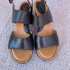 BOC Born Concept Emmeline Black Leather Strap Block Heels Sz 9 M Peeling on edges (see photos)