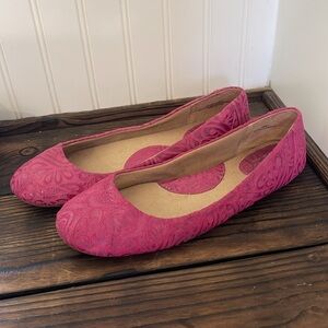 Step out in style with these BOC comfortable and so chic pink leather embossed flats. In absolutely excellent condition women’s size 10