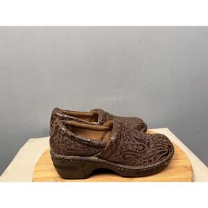 BOC Born Concept Shoes Women 8 Clogs Brown Paisley Floral Embossed Nurse Comfort
