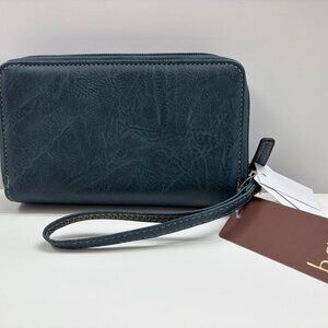 B.O.C. Born Concept Vegan Leather Embossed Blue Wristlet/ Bag / Wallet - NWT