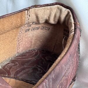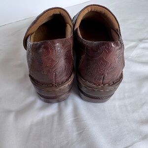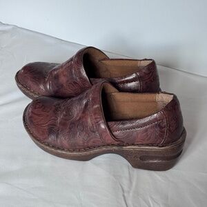 boc born concept, born shoes, comfort clogs, embossed leather, slip on shoes, brown clogs, casual comfort, everyday shoes, work shoes, rustic shoes, distressed leather, women’s size 7