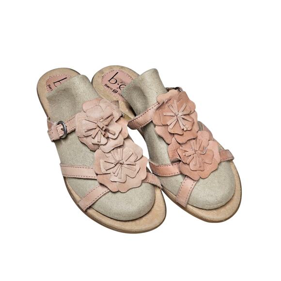 B.O.C. Born Concept Womens Pink Leather Block Heel Slide Sandals Size 7 Preppy