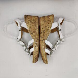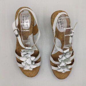 BOC Born Concept womens 8 White Leather Flowers Cork 3" Heel 1" platform
