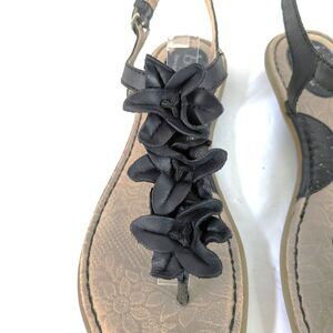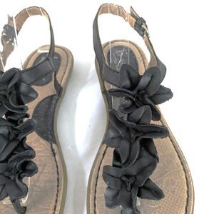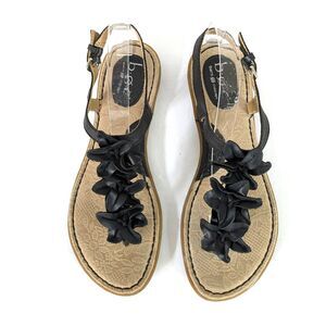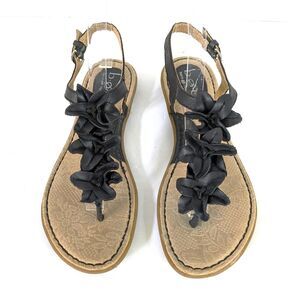 B.O.C. Born Concepts 8M Black Leather Slingback Flat Thong Sandals Flower Strap Flats.