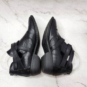 B.O.C. Born Concepts Black Faux Leather Boots Ankle Booties Strappy Women's 7.5