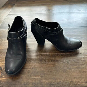 BOC Born Concepts Black Leather Block Heel Zip-Up Ankle Boots Size 9M GUC