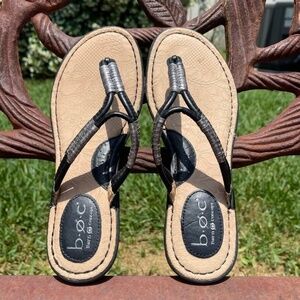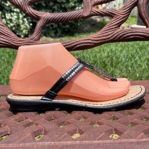 B.O.C. Born Concepts Black & Silver Leather Strappy Thong Sandals