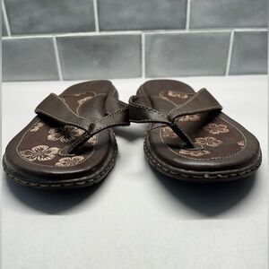 B.O.C. Born Concepts Brown Leather Boho Flip Flop Sandals size 9 Beach Summer
