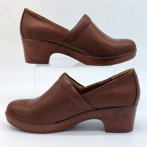 BOC Born Concepts Brown Slip-On Clogs Size 10M Faux Leather Comfort Heel Shoes