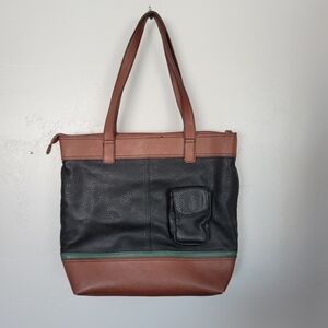 B.O.C Born Concepts Tote Bag Purse Faux Leather Tan Black Green Color Block