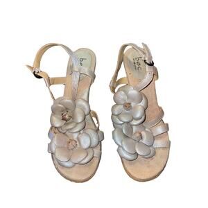 BOC Born Concepts Women's Champagne Leather T-Strap Flower Heeled Sandals Size 8