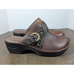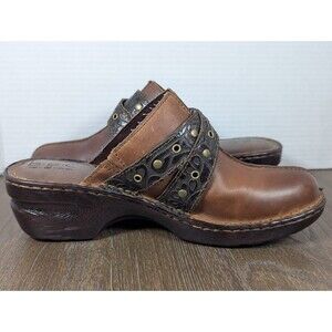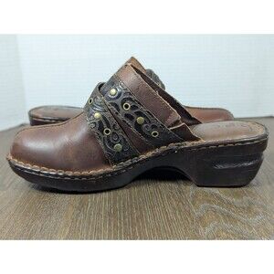 BOC Born Karley Clogs Mules Women's 10 Brown Tooled Leather Buckle Slip Ons