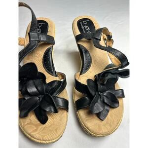 BOC Born O Concept Womens Size 8 Shoes Black Floral Slingback Wedge Sandal