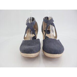 BOC Born Shoes Womens 8 M Bree Cross Ankle Strap Wedge Espadrille Blue Fabric