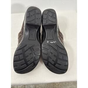 The BOC Born Women's Clogs in size 9.5 are stylish and comfortable shoes made of tumbled tooled leather with a Western theme. Featuring a round toe shape, slip-on closure, and mid-height wedge heel, these clogs are perfect for casual everyday wear. The leather outsole and insole provide added comfort and durability, while the floral pattern and embossed accents give a unique touch to the design. These clogs are suitable for all seasons and have a cushioned interior for added comfort during long walks or hours of wear.