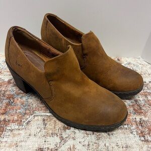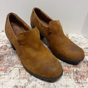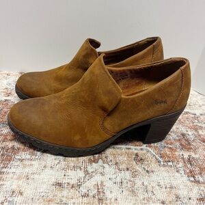BOC Born Womens Carla Brown Booties Distressed Leather Slip On Heeled Boots 8.5M