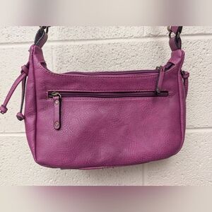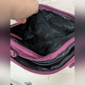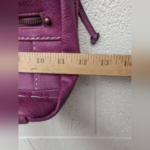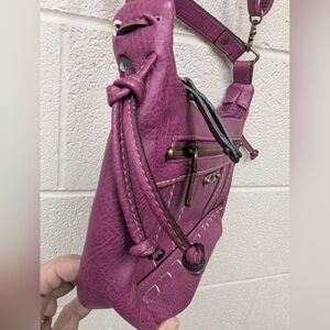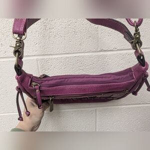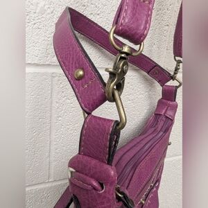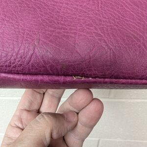 This purse has had some wear and there are a few marks shown in the photos, but the beautiful color will overcome those small issues. It has a removable strap. At first glance it's in great shape and has some great zippers and storage for a small bag. Comes from a smoke-free home.