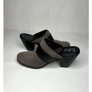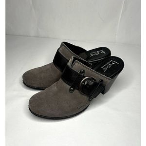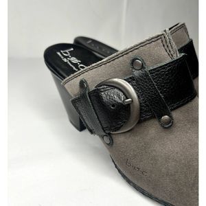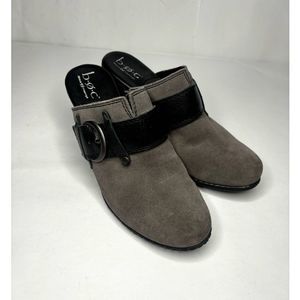 B.O.C. By Born Grey Suede Slip-On Black Buckle Detail Mules Clog