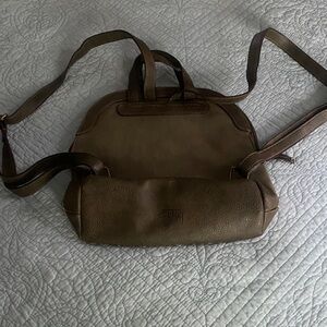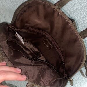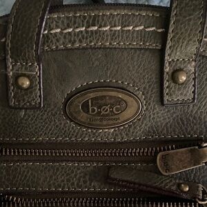 Stylish vegan leather bag by B.O.C. Features practical zip pockets. Measures 10x4x11” body.