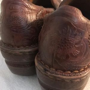 B.O.C. Clog Peggy Floral Engraved Pattern Design Brown Shoes Size 9.5