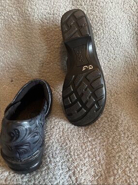 BOC Women’s black clogs, floral, size 8.5