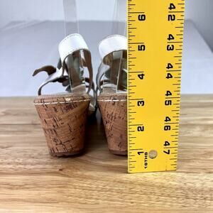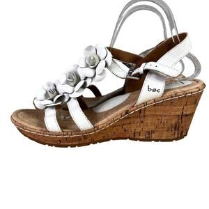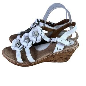 BOC Cornelis Wedge Sandals 10M White Floral Adjustable Ankle Strap Leather Upper