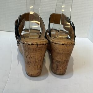 B.O.C Devona Leather Strap Cork Platform Wedge Slip on Mules Sandals Size 9