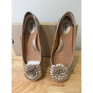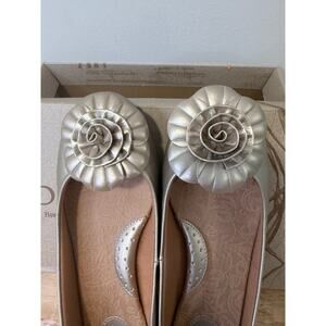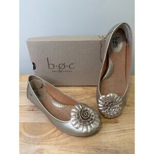 B.O.C Fun & Artsy Flats Champagne Silver Shoes with Flower Applique Size 8.5 JL