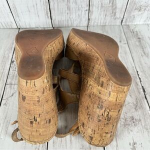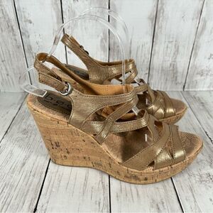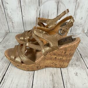 BOC Gold Leather Strappy Cork Padded Wedge Heel Sandals Women's sz 9