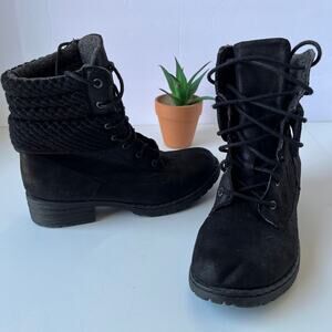 BOC Karel Combat Womens Boots Size 6M Black Stacked Heel Herringbone Z23400