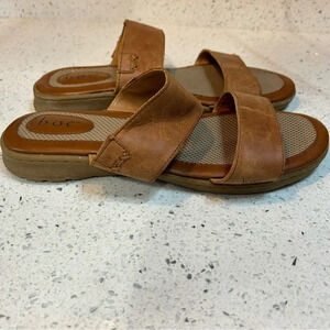 BOC Leather Double Strap Tan Sandals Distressed Leather