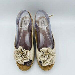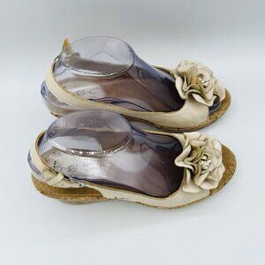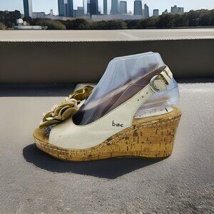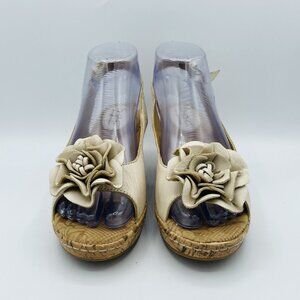BOC Sandals Womens Size 6 M Beige Born Floral Leather Buckle Cork Wedge Shoes