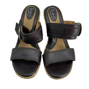 B.O.C. Size 8 /39 Brown Leather Buckle Strap Cork Wedge Sandals Born Boho BOC