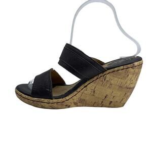 B.O.C. Size US 8 / EU 39 Brown Leather Buckle Double Strap Cork Wedge Sandal. Sides look like cork and have a few minor flaws so please see all photos for condition details. Good pre-owned condition.