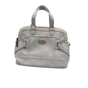 B.O.C. White Faux Leather Handbag With Gold Accents Double Handles