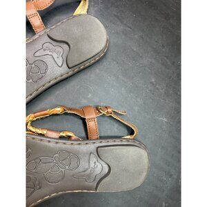 B.O.C. Womens Braided T-Strap Faux Leather Sandals Size 9M Brown & Gold