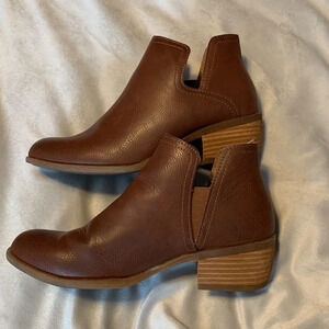 BOC Womens Brown Side Cut Outs Cushioned Round Toe Stacked Heel Size 8