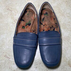 B.O.C. Womens Navy Blue Faux Leather Loafer Flats Comfort Casual Preppy Academia